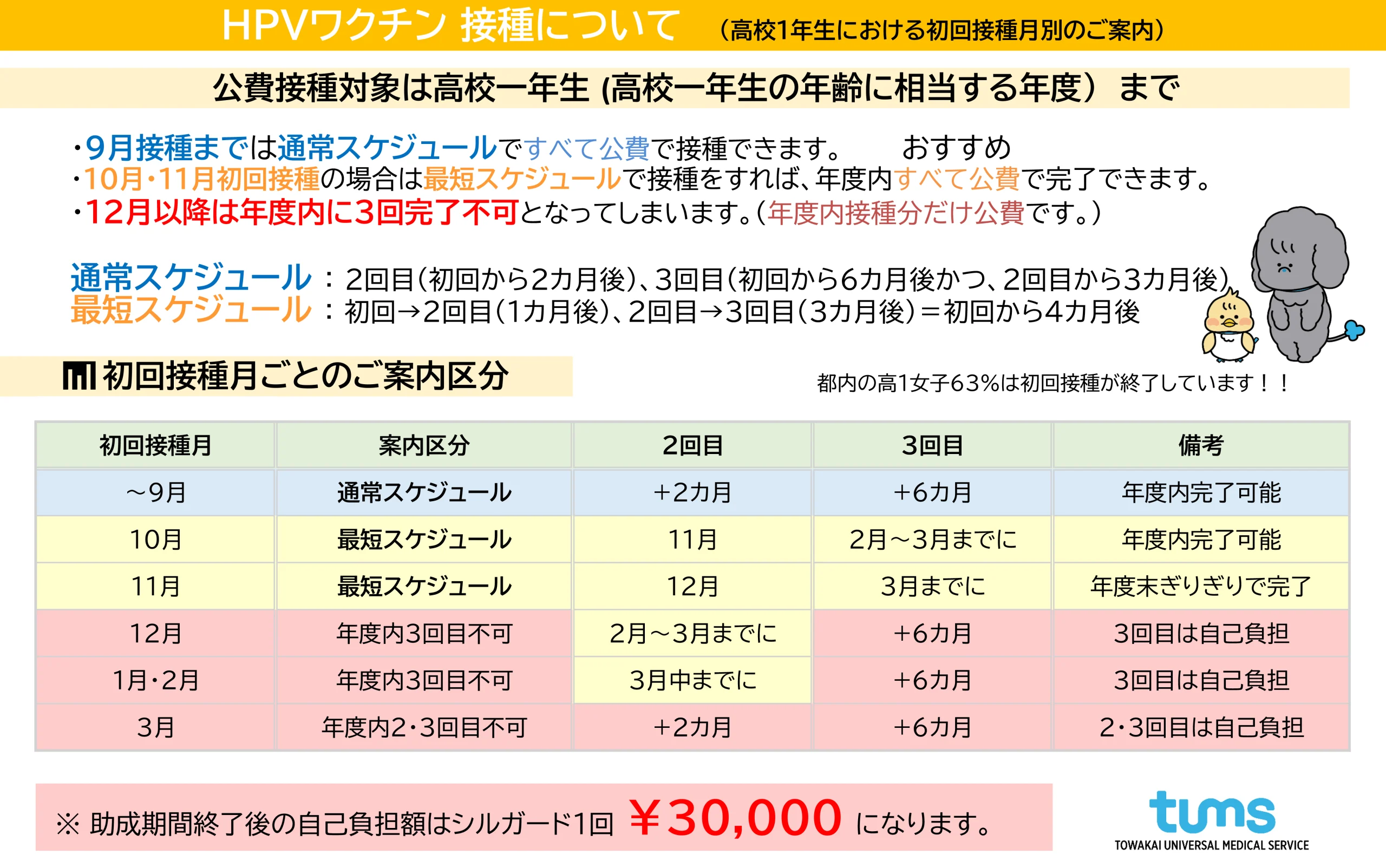 接種は複数回に分けて行うため、開始時期によっては年度内にすべての接種が完了できない場合があります。